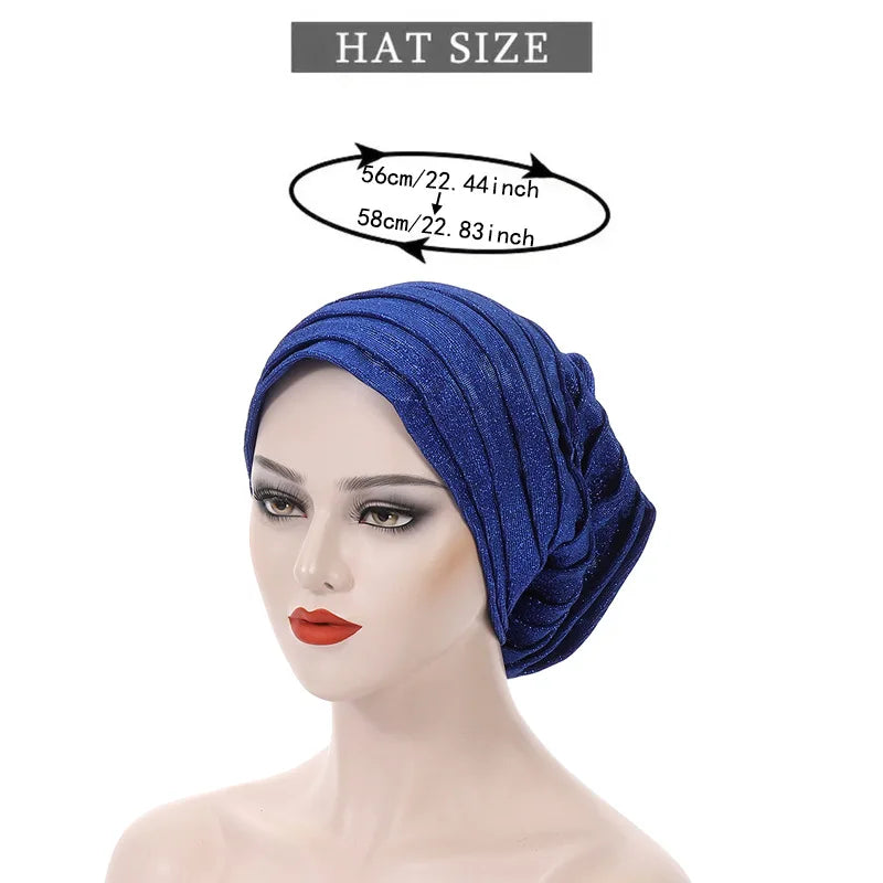 Candy Color Ladies Head Wraps Glitter Muslim Hijab Bonnets Fashion Headgear Elastic Full Body Pleated Turban Cap for Women 2024