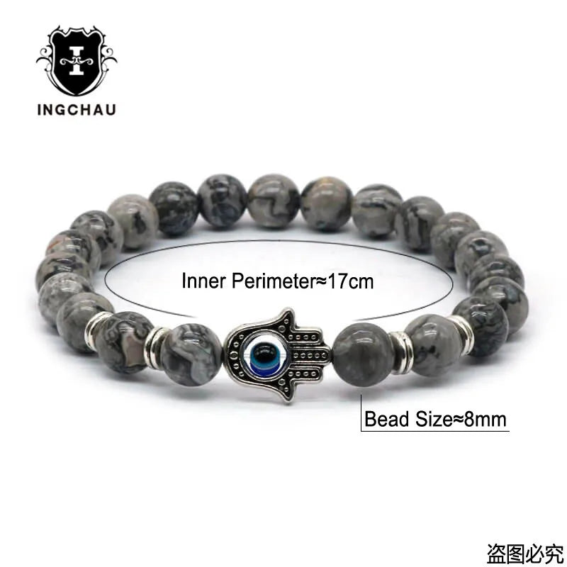 Gold-Color Hand of Fatima Hamsa Hand Bracelet of Mala Black Lava Stone Evil Eye Amulet Bracelets For Men Women HT-5