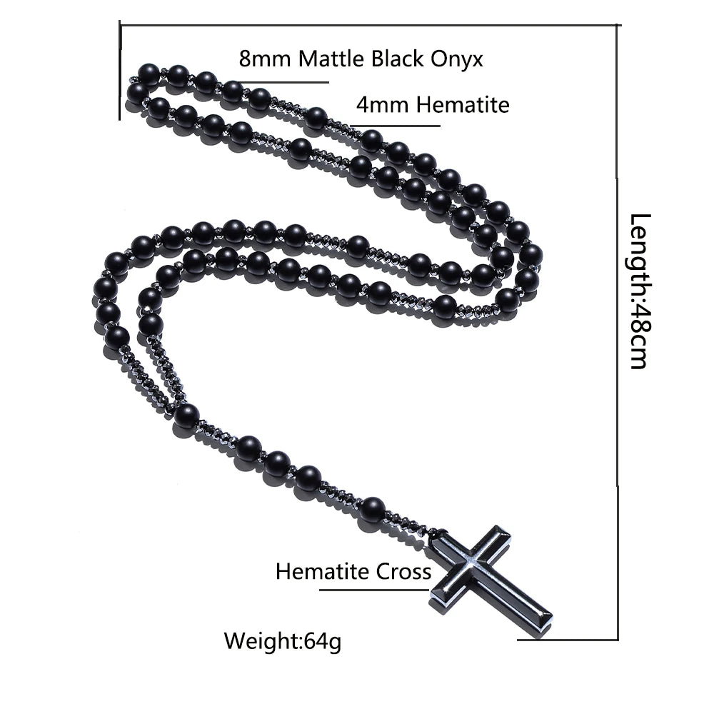 Matte Black Onyx Beaded Catholic Christian Rosary Necklace Cross Pendant Men and Women Meditation Mala Jewelry