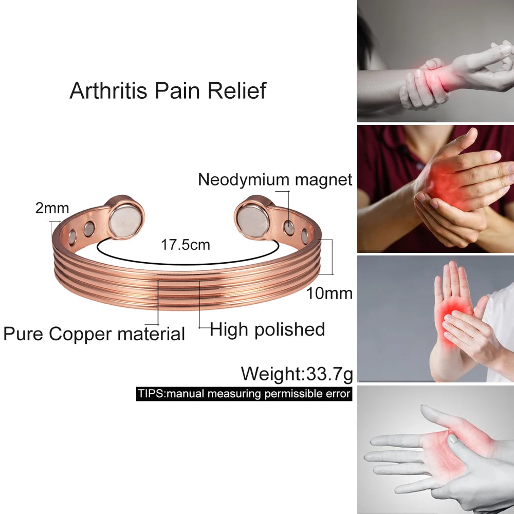 Pure Copper Bracelets for Men Women Adjustable Cuff Stripe Magnetic Bangles Arthritis Health High Magnet Solid Copper Jewelry